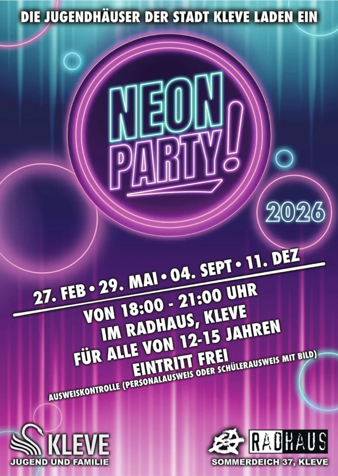 Am Freitag 27.02.26 steigt die ultimative Party für alle von 12-15 Jahren wieder von 18.00-21.00 Uhr im Jugend- & Kulturzentrum RADHAUS, Sommerdeich (Nähe Polizei/Campus).